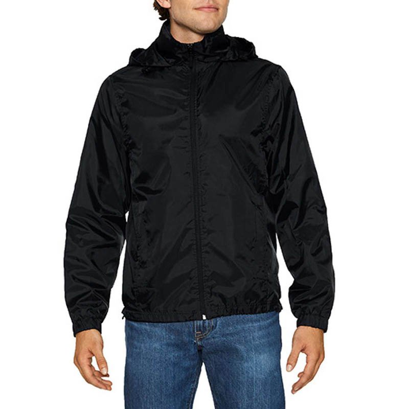 Lightweight, breathable windbreaker jacket. Made of microfiber fabric that effectively blocks wind penetration for added protection.Includes a mesh opening at the back for improved breathability and a better airflow. Straight-cut waist with adjustable elastic drawstring and stopper for a better fit and added comfort. Two slanted zippered waist pockets for a secure and convenient storage. Suitable marking methods: screen printing, embroidery, transfer printing, vinyl application. Ideal for running, cycling and outdoor sports.